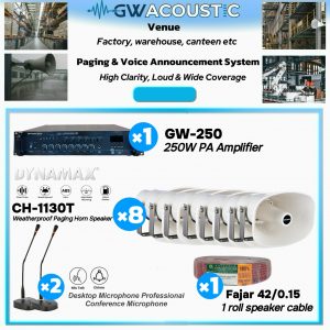 GWACOUSTIC 150W PA System Set | 5x 30W Horn Speaker + 2 Mic | Factory/Warehouse Paging System | Clear & Loud