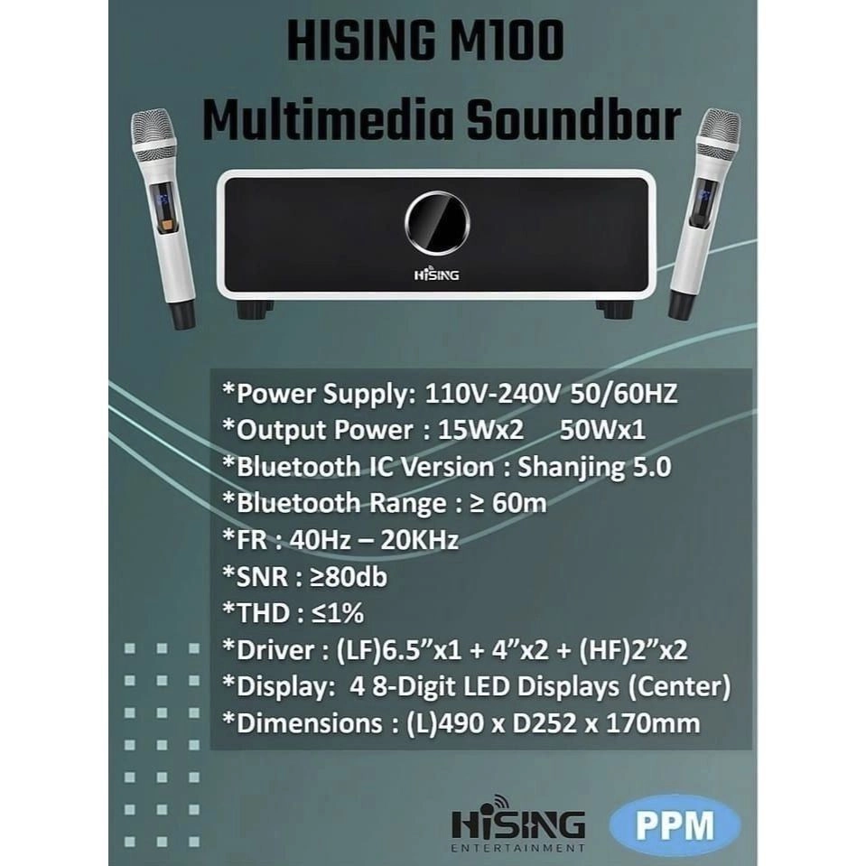 HiSing M100 All-in-One Family Karaoke Soundbar Brand New With Amplifier, Mixer, Wireless Mic & Karaoke Song Selector